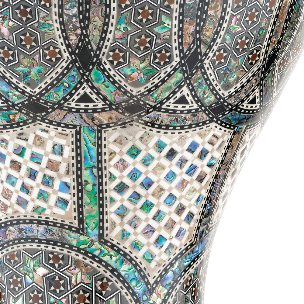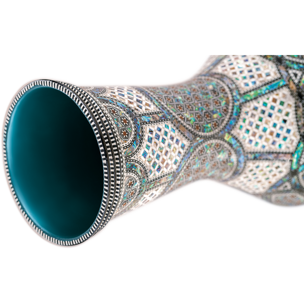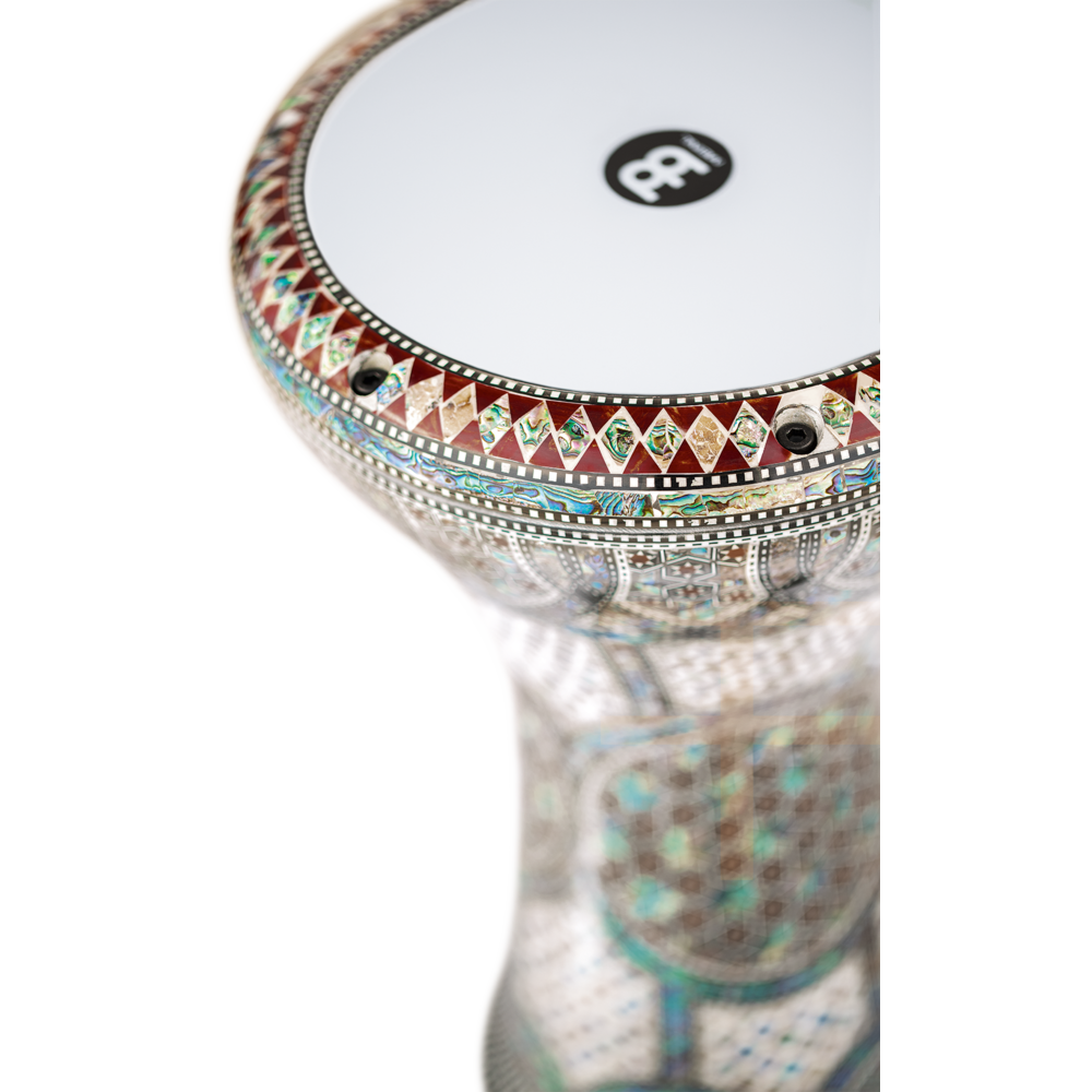 The MEINL Percussion Artisan Edition Doumbeks are made in Egypt. The authentic mosaic artwork finish is created with mother of pearl inlays. The doumbek itself is cast of solid aluminum and has a quality heft and beautiful tone that serious players will love.