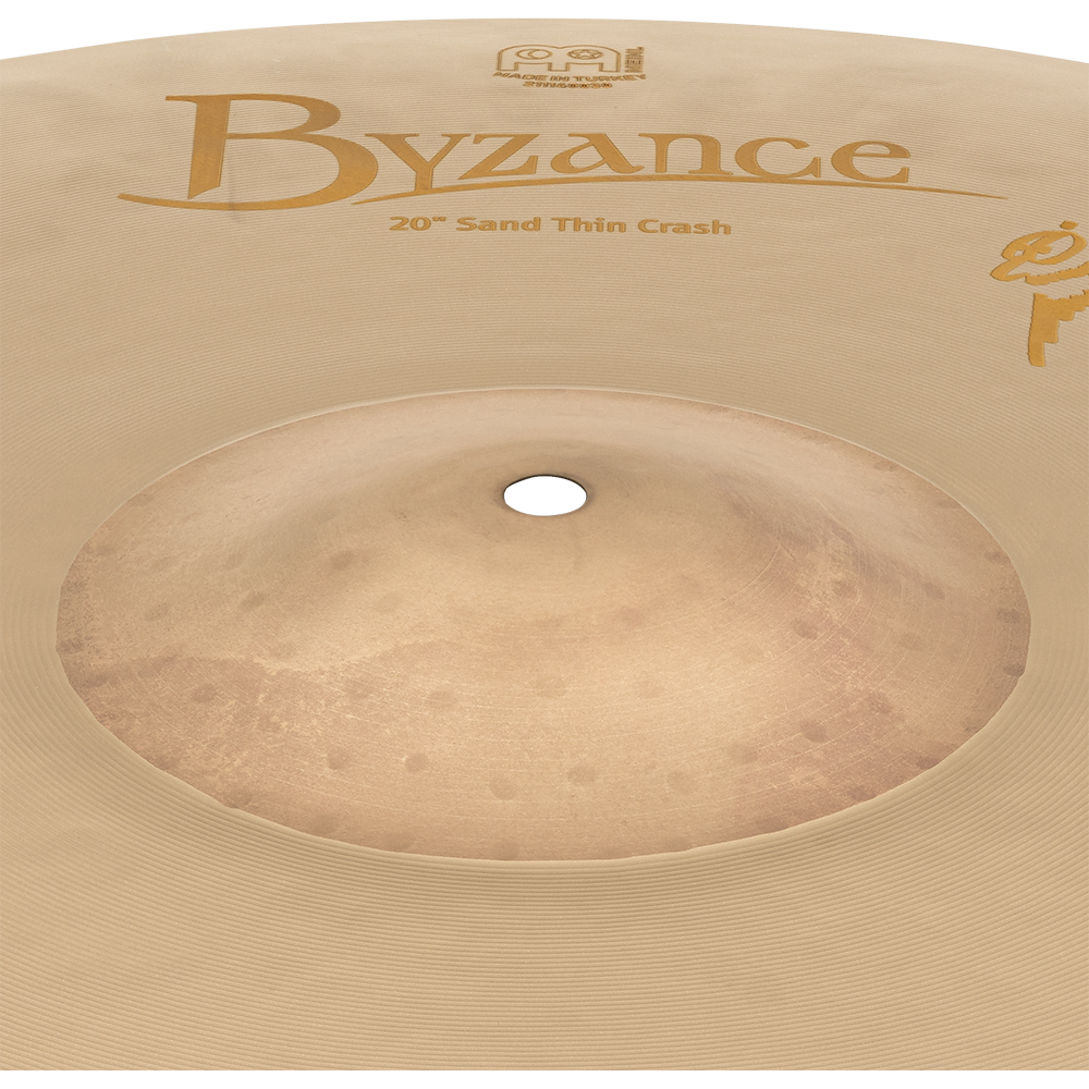 The 20" Sand Thin Crash is a pitch matched, dark sounding cymbal with a short sustain. What stands out is its relatively trashy crash sound with a modern white-noise character.