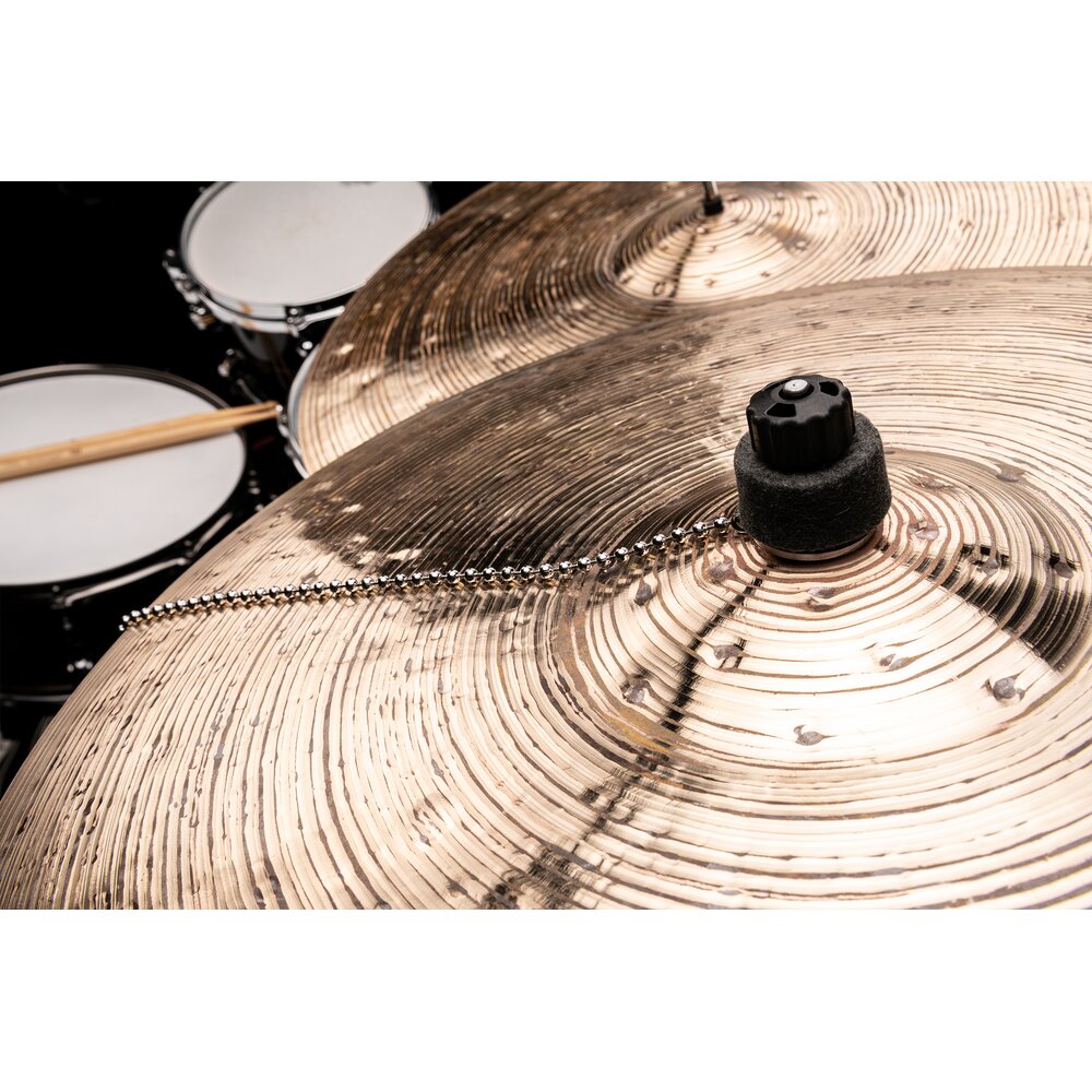 The Meinl Cymbal Bacon adds a sizzle sound to any ride, crash, or effect cymbal in your setup. From traditional and brilliant to raw hand hammered cymbals, the lightweight Meinl Cymbal Bacon adds an instant effect without harming cymbal surfaces or dampening cymbal sustain. The thin washer is made to fit on any cymbal stand and may be placed underneath or on top your cymbals felts (or use without felts). This simple design allows you to grab the Cymbal Bacon and place on any cymbal throughout your performance with no hassle. Instead of drilling your cymbals to add metal rivets, the 10 ½” stainless steel beaded chain will bounce on the top of your cymbal, providing a sizzle sound that can be used in any setting from jazz and funk to fusion and pop.