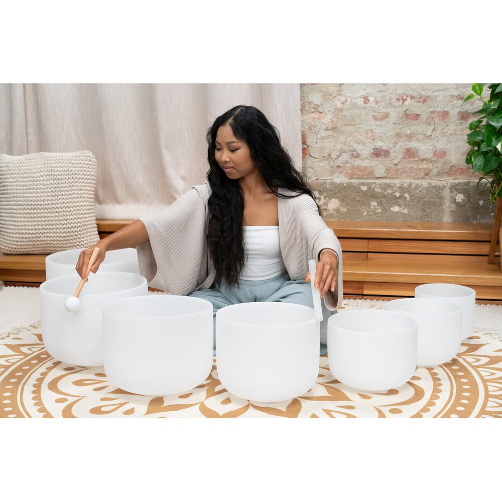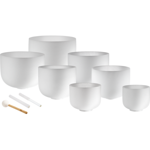 The white-frosted Meinl Sonic Energy Crystal Singing Bowls made of high-purity quartz create a very pleasant aura with their sound and design. Their long-lasting, spherical tone spreads when the singing bowl is gently tapped or rubbed so that the energy can be felt in the entire surrounding. In this 7-piece Chakra-set, all Crystal Singing Bowls are delivered with a silicone ring to avoid possible impact and to ensure the best resonance. One medium rod, one large rod, and one mallet allow you to start playing right away.