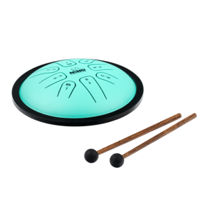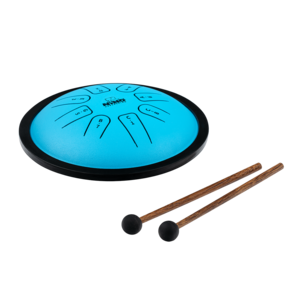 From Nino Percussion is the Mini Melody Steel Tongue Drum with pre-tuned notes for any young musician or teacher to play. This 6” diameter drum can be played by anyone, anywhere, regardless of skill. Great for younger children learning about music or for teachers to use as a signal to corral a classroom. Its pre-tuned scale means there are no wrong notes, and the sound is mellow and soothing (like a soft steel pan drum). Includes two soft rubber mallets for a full and tranquil tone.