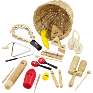 These two Nino Rhythm sets include 12 or 15 individual instruments. They are perfect for use in kindergarten, schools, or percussion groups. These collections of different instruments are the ideal way to explore the complete Nino world of percussion and rhythm.