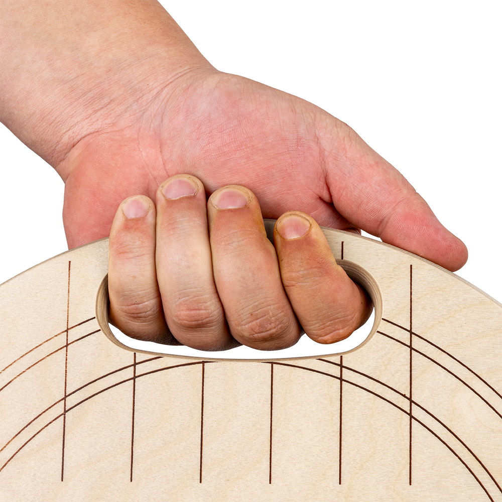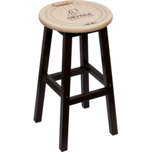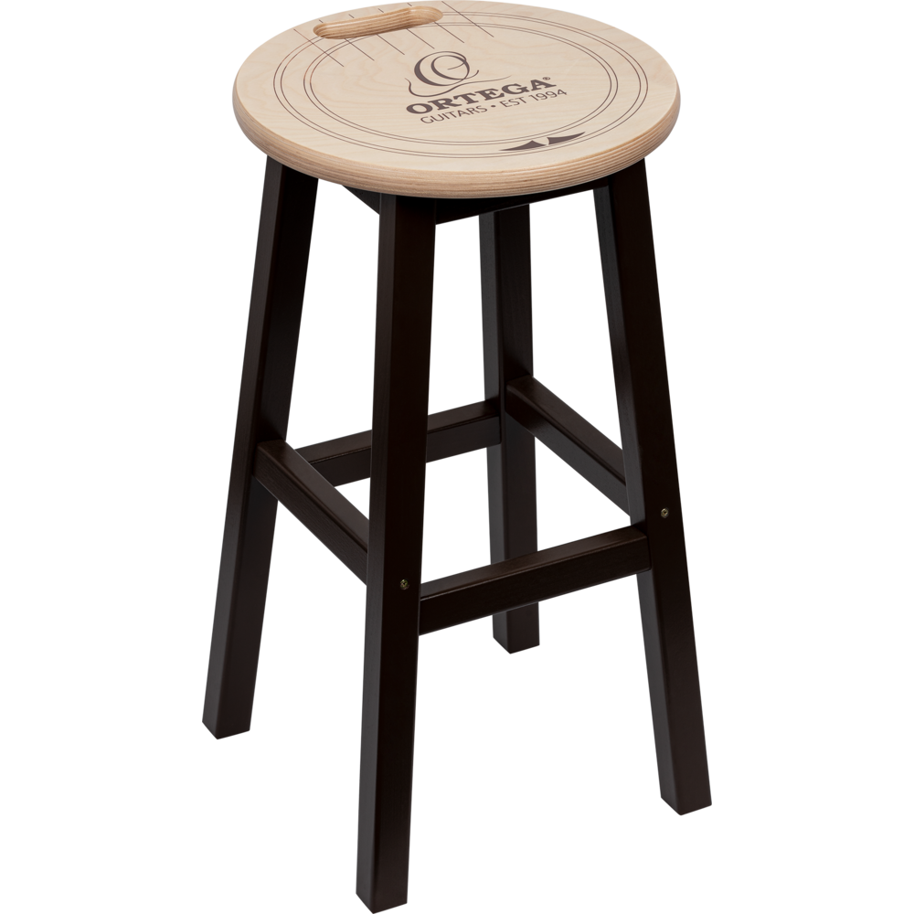 Solid wood barstool with Ortega soundhole design and comfortable carrying handle.