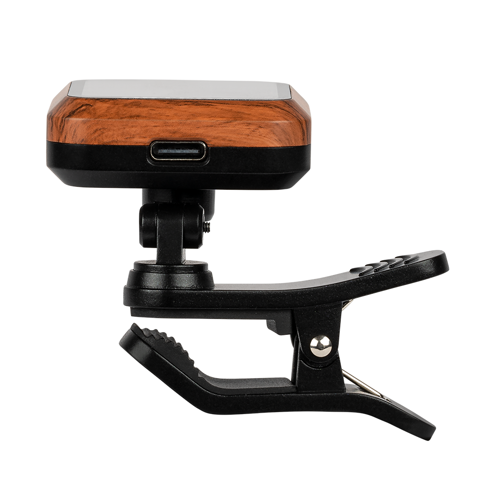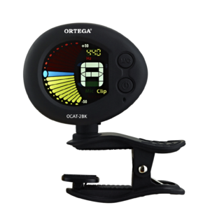 The OETRC multi-mode calibration clip-on tuner for chromatic, guitar, bass, and ukulele. The rechargeable tuner has a very bright and clear VA-LED (vertical alignment) display.