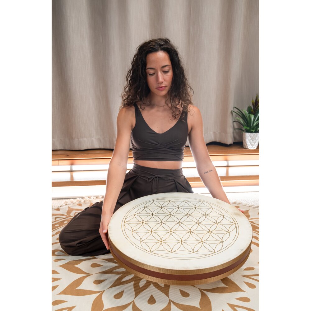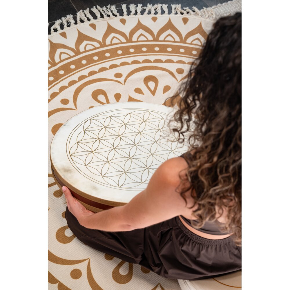 The Flower of Life Wave Drums are built with two natural goat skin heads and feature a special soft filling inside, which creates an especially gentle wave sound. Decorated with the symbolic Flower of Life, they also carry a strong visual and spiritual presence.