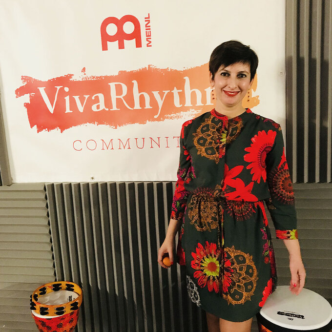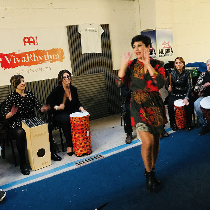 Alessandra Massari has approached the world of percussion instruments since the age of 19, during a long tour in Togo, Western Africa. There, she got fascinated by the central role of music in the local population's daily life: on that occasion, she was able to catch both the communicative aspect and the universal message of it. Back in Italy, she decided to take up studying percussions with the teacher Adolfo Valeri; then, she deepens her knowledge of Afro-Cuban music at the school 'Timba', having Roberto Evangelisti as a teacher for four years. At the same school, she collaborates with musicians of high level like Giancarlo Ciminelli, Juan Carlos Albelo Zamora, Valter Paiola, El Goyo. In the same years, she attends workshops of African percussions with Badu N'Diaye, of Eastern percussions with Mohamed Abdalla, Brasilian percussions with Neney Santos.