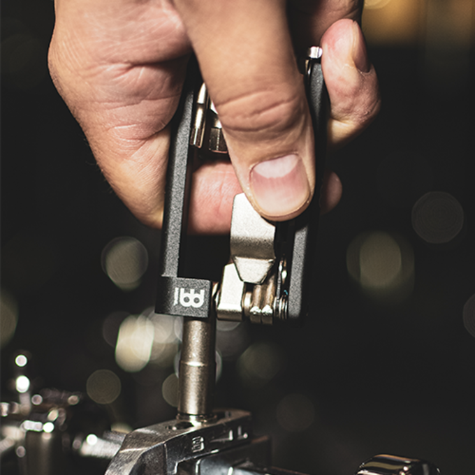 Going beyond the drum key, we've carefully selected tools that can go into tight spaces around the kit to fix both common and unusual issues. The best part? It's smaller than your phone and clips to your belt.