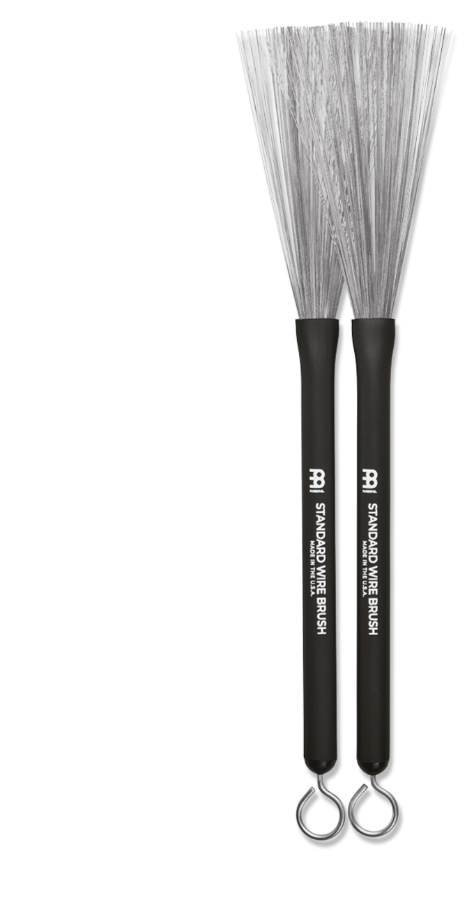 Brushes use very soft and flexible materials which are typically fanned out, but can also be bundled together. Materials found in brushes consist of metal and nylon wires, bamboo and straw. Metal wires generate snappy and crisp slaps as well as lush sweeping tones. Nylon wires provide both flexibility and durability with a warmer sound. Straw material creates a unique soft attack and fat warmth.