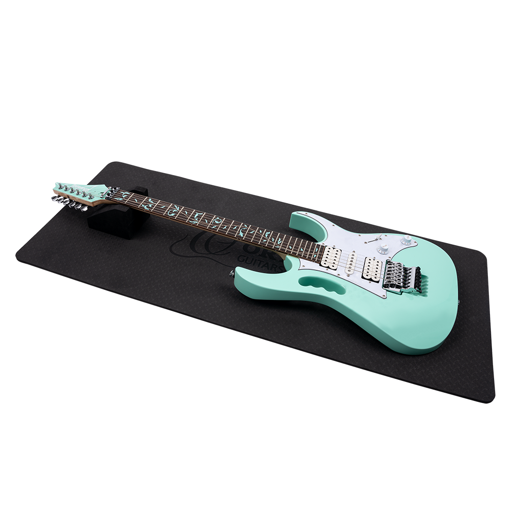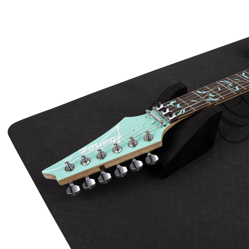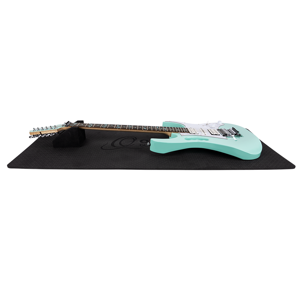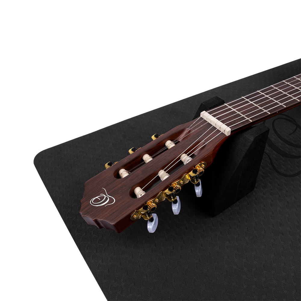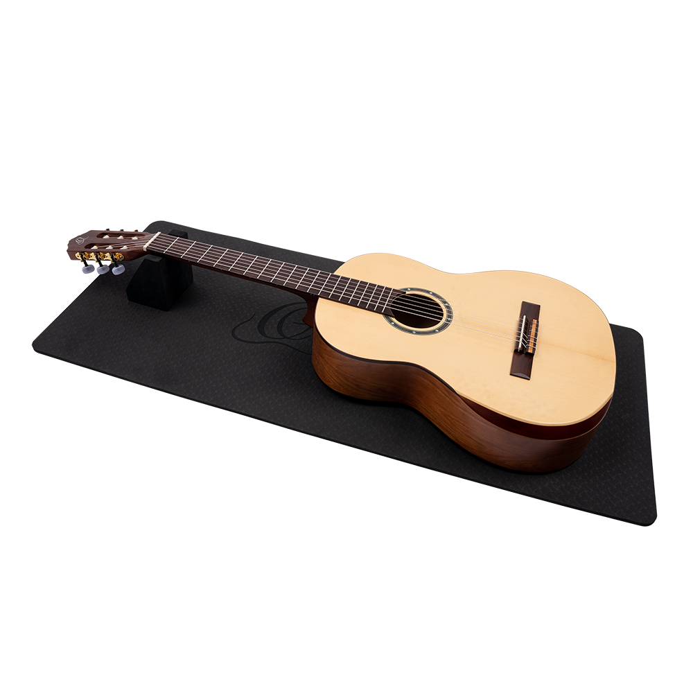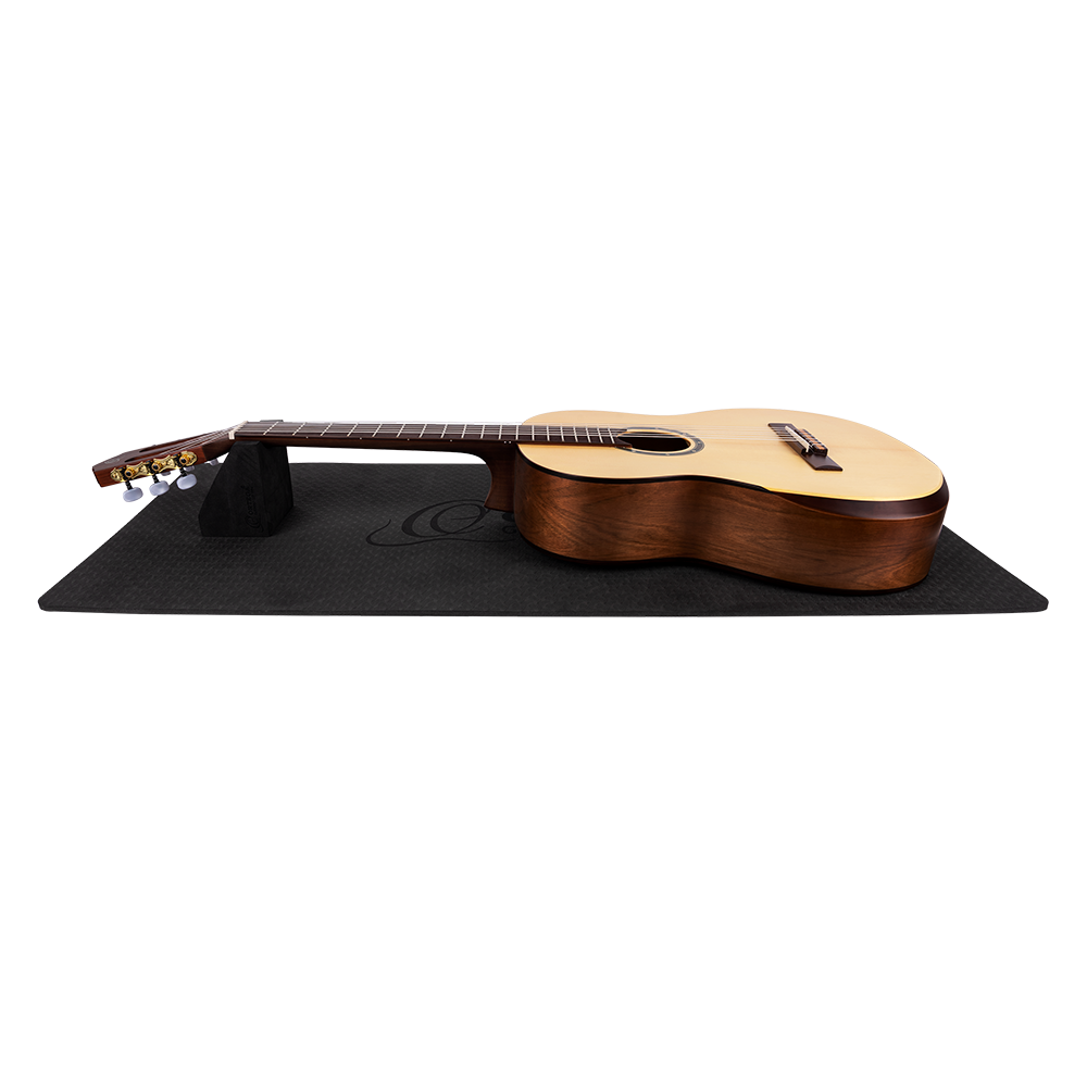 The Ortega Guitars Instrument Work Mat is a must-have for every guitarist, bassist, or ukulele player. If you want to do basic maintenance or setup work to your instrument, repairs such as soldering and smaller woodwork, or just want to change your strings and clean your instrument, the Instrument Work Mat provides a safe place to do so. Thanks to the multi-neck support you can easily work on every stringed instrument. The mat is made of a soft foam material, which prevents scratches or other damages. The non-slip surface guarantees that your instrument stays in place all the time.
